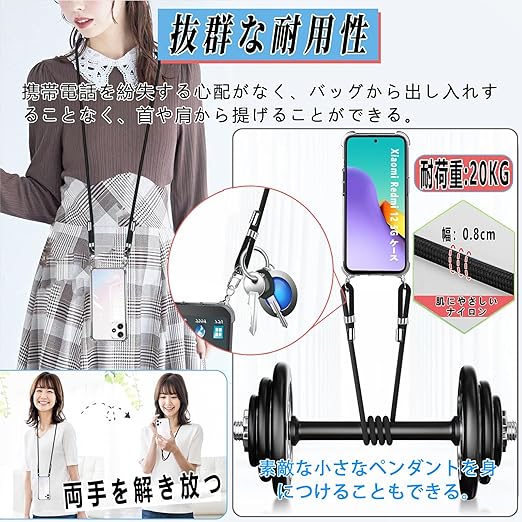 【携帯ストラップ2枚付き & 両手解放】本Xiaomi Redmi 12 5G ケースにはフィンガーストラップとネックストラップが付属します、このネックストラップは、ボタンを押すと、カチッと外せて取り外しが簡単です。急な着信、メールやネット使用時、スマホやデジカメで撮影したいとき、改札でICカードをタッチしたい時などもネックストラップの煩わしさを感じずに、ストレスフリーに使えます。実験により、ストラップは、約15KG(約200個のiPhone Plusの重量)の引く力に耐えらます (あなたは受け