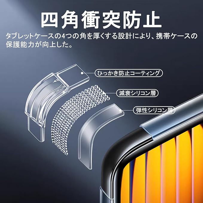 【薄型軽量・滑り防止】良い手触り、耐久性が最も効率的で丈夫なの素材の一つであるTPUで作られております。柔らかい素材のため、着脱も簡単で、タブレット本体への擦り傷も心配無用です。バンパーに滑り止め加工が施しているため、手持