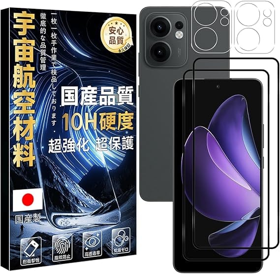 【宇宙航空材料・硬度10H】 対応 OPPO Reno13 A ガラスフィルム + レンズ保護フィルム 指紋認証対応 【2+2枚セット-国産旭硝子素材】 oppo reno 13a フィルム 黒縁 強化ガラス ラウンドエッジ加工 自動吸着 気泡ゼロ 耐衝撃 飛散防止 指紋防止 WEKOP13ASY4 ? ? a