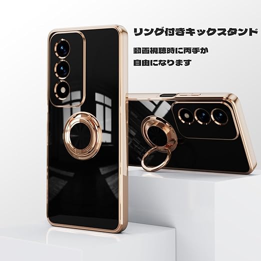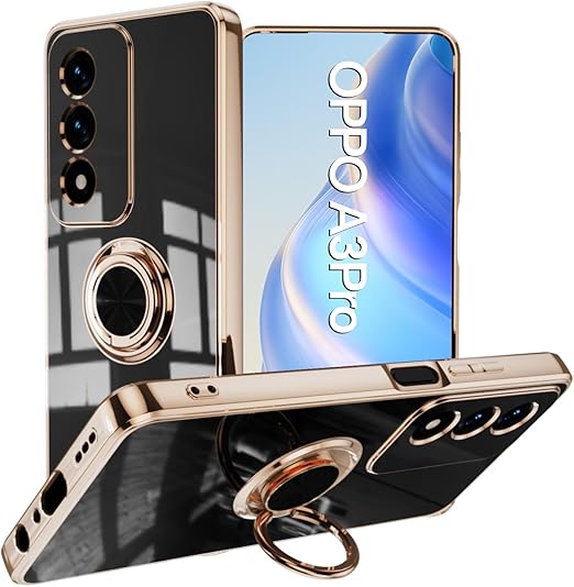 Kawasina OPPO A3 5G ケース リング スタンド 日本版 A402OP CPH2639 オッポa3 ケース リング付き ソフトメッキ加工 ブラック a