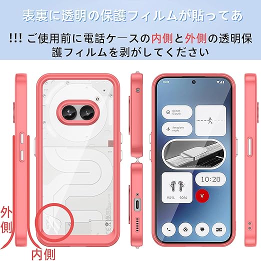 Nothing Phone 2a ケース『AFINER』新型 軽量 超薄型 TPU+PC 透明 カバー Nothing Phone (2a) 専用 耐衝撃 衝撃吸収 指紋防止 擦り傷防止 レンズ保護 着脱簡単(レッド) a