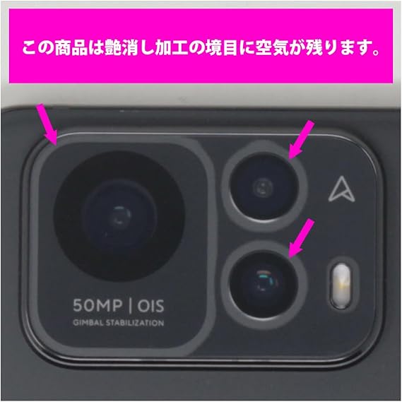 ※機器表面の仕上げの都合により、艶消し加工の境目に空気が残ります。 ※この機器はカメラレンズ部のコーティングが良いため、フィルムに力を加えると貼り付けた位置から動く場合がございます。簡単に戻せますので、戻してお使いください。
