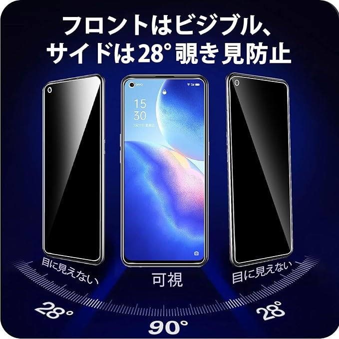 対応 OPPO Reno5 A ガラスフィルム 覗き見防止 【2枚セット-国産旭硝子素材】OPPO Reno5 A フィルム ぞき見防止 Reno5 A 保護フィルム 液晶 超薄 硬度9H 横から見えない 強化ガラス 飛散防止 気泡ゼロ 指紋防止 自動吸着 貼り付け簡単 高質感 ラウンドエッジ加工 DERENO5AFK02 a