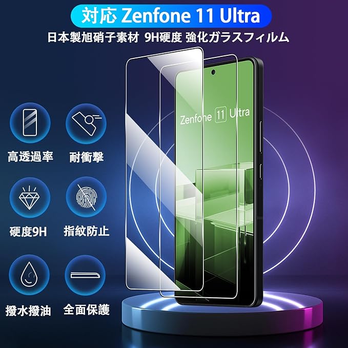 【日本製素材旭硝子製・耐衝撃性、飛散防止でさらに安心!】 対応 Zenfone 11 Ultra 保護