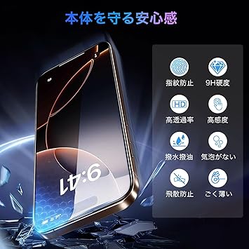 【指紋低減】指紋や汚れを防ぎ、 しっかり保護します。静電気が起こりづらく、ホコリも付着しにくい帯電防止仕様です。 飛散防止加工で粉々に散らばらないので、ディスプレイの画面や、人を傷つける心配がありません。