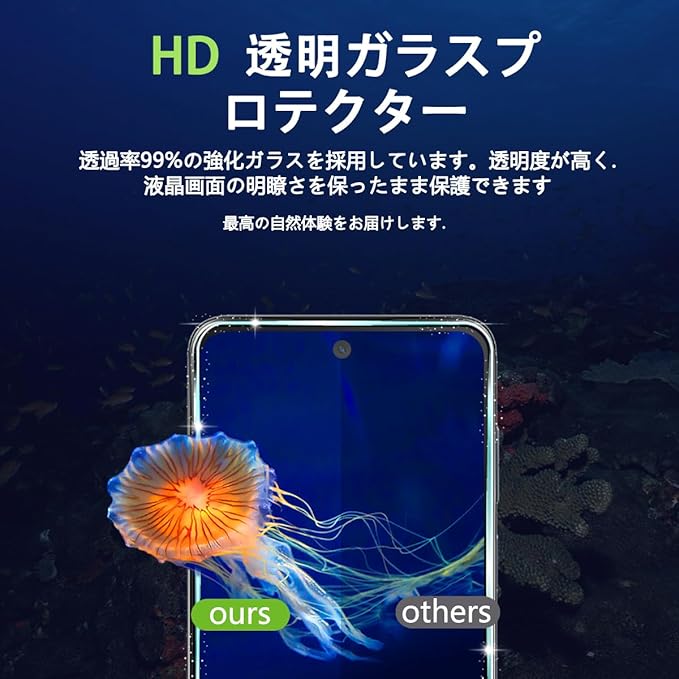 【高透過率】 高品質の日本製旭硝子素材を採用することで透過性がに達しています。市販のガラスフィルムより透明度が高くて、液晶画面の本来の美しさを損なわないません。高精細度でいつでも写真やビデオを楽しむことができます。