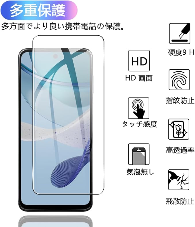【対応機種 】 対応 moto g53j 5G / moto g53y 5G ガラスフィルム + カメラフィルム ,専用液晶画面保護ガラスフィルム。フィルムのシリコン自己吸着層により、スチールフィルムを携帯電話に合わせて軽く置くだけで、気泡が入らないように簡単に取り付けられます。