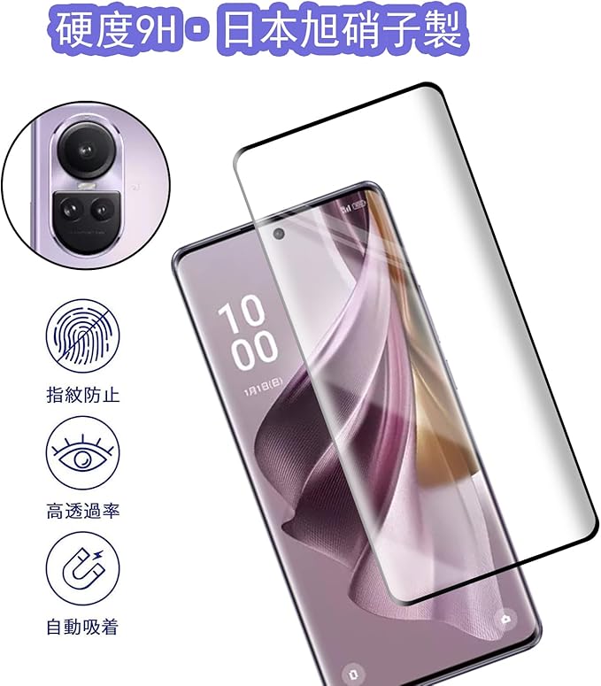 【2+2枚セット】OPPO Reno10 Pro 5G 用の ガラスフィルム(2枚) + レンズ保護フィルム (2枚) フィルム 強化ガラス液晶保護フィルム液晶 ガラス ケース フィルム 硬度9H 3D曲面 スクラッチ防止 飛散防止 撥水撥油 指紋防止 貼り付け簡単 OPPO Reno10 Pro 5G 用の a