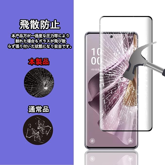 【画面保護、高安全性】ガラスフィルムは9H硬度の強化ガラスでかなり曲げても割れません。万が一過度な圧力等により割れた場合もガラスが飛び散らず張り付いた状態になり安全です。