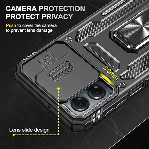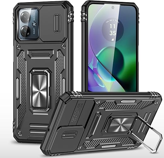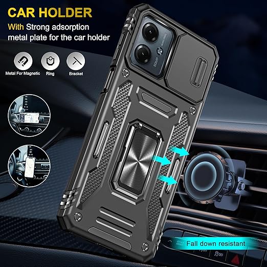 Kawasina moto g64 5G 用 ケース リング moto g64y 5G 用 360度回転 モトg64 5g ケース リング付き タンド機能 落下防止 耐衝撃 ブラック a