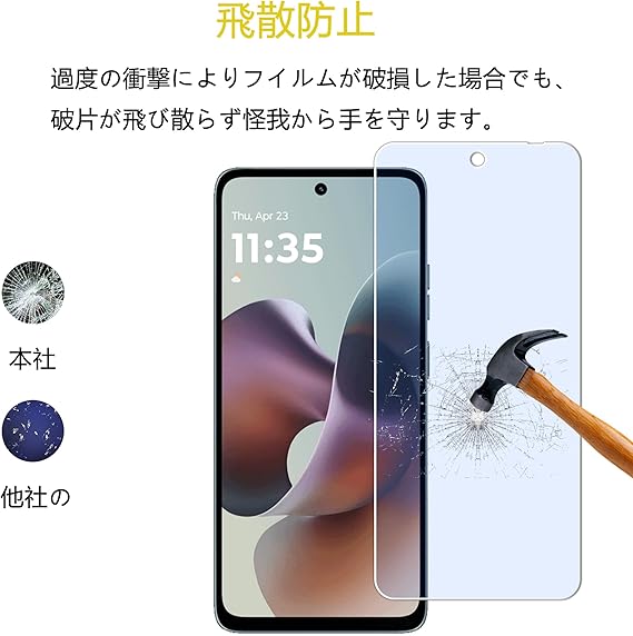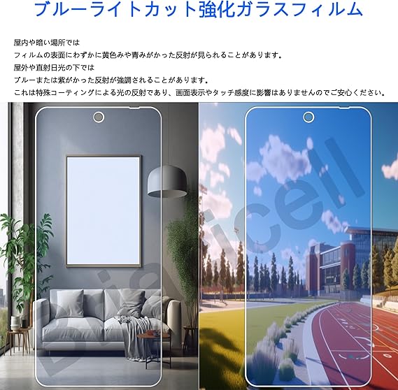 【ブルーライトカット】この強化ガラスフィルムは、ブルーライトカット技術を採用しており、ブルーライトカット率は93%です。目の疲れを軽減し、近視の進行を防ぐ効果があります。長時間ディスプレイを使用する方におすすめです。ただし、このフィルムのブルーライトカット効果は、外部光源に依存しています。そのため、室内の光が弱い場合、効果があまり目立た