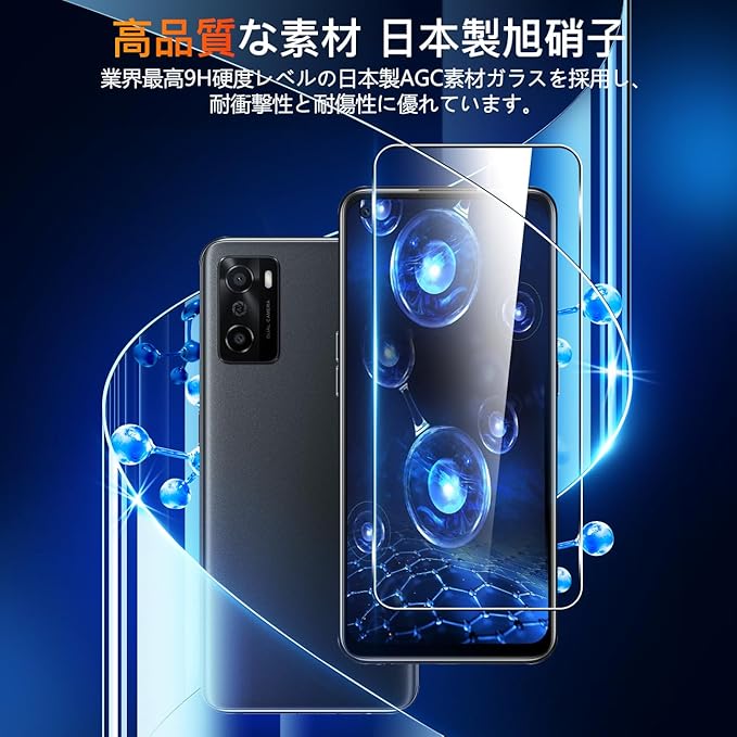 【飛散防止可能の9H硬度】 対応 OPPO A55s ガラスフィルム 保護フィルムはす旭硝子で作られており、スマホ保護フィルムの中で最高レベルの9H硬度に達しています。手にフィットして持ちやすく滑りにくいので落ちにくいです。万が一落ちてもフィルムが衝撃を吸収してくれるので、スクリーンの損
