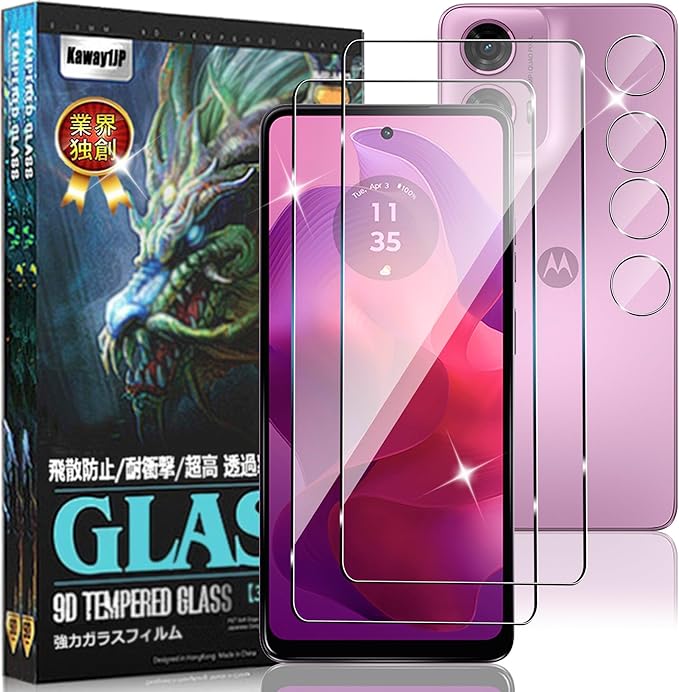 kawaylJP For Motorola Moto G24 ガラスフィルム【2* フィルム + 2* レンズ保護フィルム 日本旭硝子製】ギャラクシー Motorola Moto G24 フィルム 硬度9H Motorola Moto G24 強化ガラス 耐衝撃 高透過率 気泡 飛散防止 撥水撥油 保護フィルム a