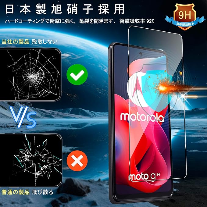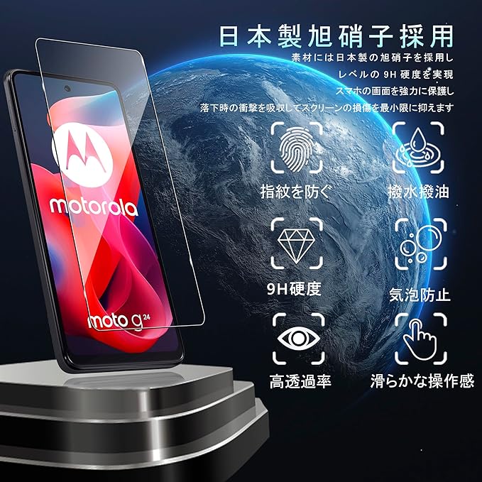 【対応機種】:Motorola Moto G24 用 2枚強化ガラスフィルム+ 2枚カメラ保護フィルム