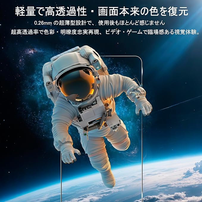 【業界トップレベルの 9H 硬度の強化ガラス】当社のスクリーン保護フィルムは、業界で最も優れた 9H 硬度の強化ガラス素材を採用しており、有名な日本の AGC 旭硝子によって製造されています。4.5 時間以上の高温焼入れ処理を施し、圧強度は 125mpa に達し、通常のガラスの 5 倍の強度を持っています。カッターなどの鋭利な物のこするような接触にも、簡単に耐えることができ、傷が付きにくいです