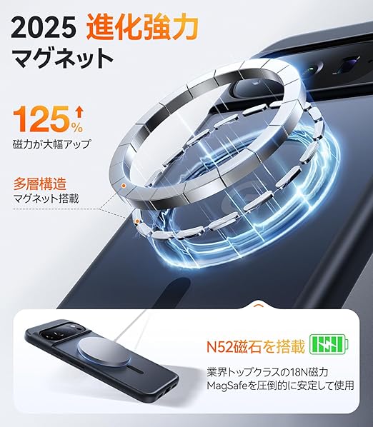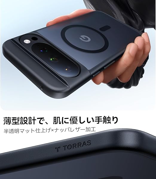 TORRAS Google Pixel 10 / Pixel 10 Pro 用 ケース【米軍規格・Magsafe 対応】 衝?吸収 ワイヤレス充電対応 半透明 黄変防止 防指紋 防滑 エアバッグクッション 搭載マグネット カラー交換可能ボタン Guardian-Mag ブラック a