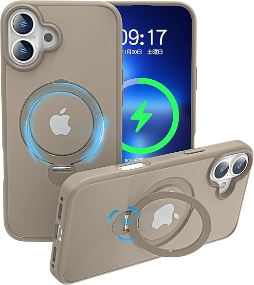 【360度回転可能・角度自由自在・半透明美学】 アイフォン 16 Plus用ケースの背面には、金属製造で360°回転可能なスタンドを革新的に設計されており、とても薄いのにしっかりとした造りで、好きな角度で固定できる。上下に 120°の多角度自由に調整できます、縦置きでも横置きでも安定して支えられます。仕事中のビデオ会議『縦置スタンド』、映画鑑賞『横置スタンド』、ゲームをしたり、写真を撮ったり、リングとしても利用できる、様々な
