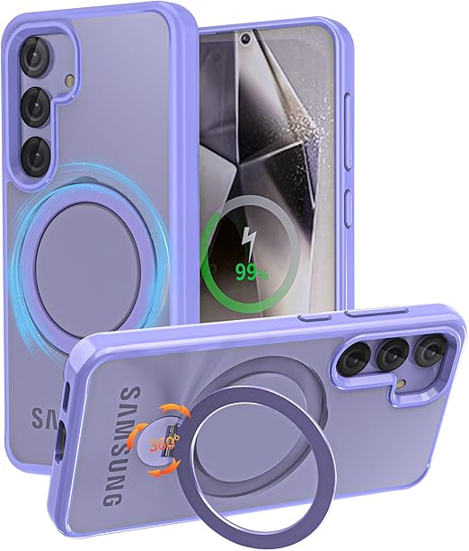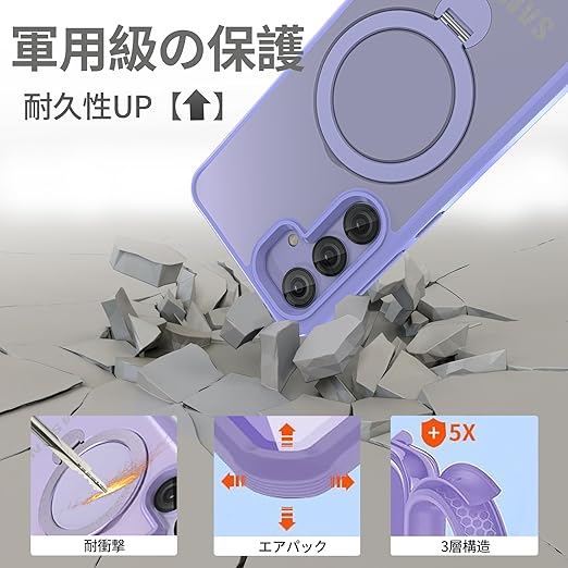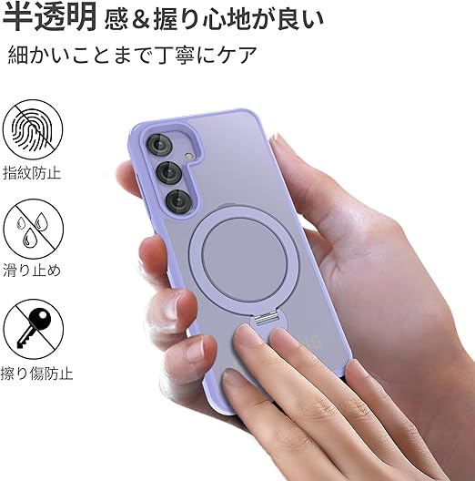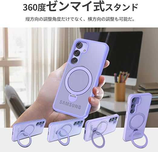 【定点360度回転スタンドとMagSafe併用】smhokesu galaxy S24 Plus 用 ケース Magsafe 対応 [定点回転スタンド・超絶安定性] 半透明感 マグセーフ 超強力な磁力 縦横両対応 米軍MIL規格取得・耐衝撃 ギャラクシーS24 ultra ケース ギャラクシー s24プラス 手帳型カバー 指紋防止 黄変防止 パープル a
