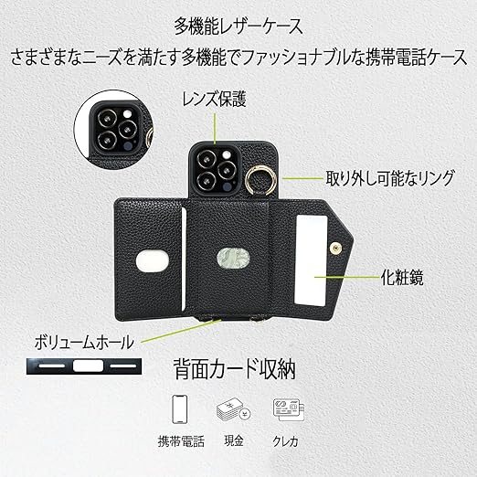 財布??機能??:このピクセル10 ケース ショルダー の背面にはカードポケットが付いており、名刺、定期券、運転免許証、現金などを収納できます。カードポケット内には小さな鏡が付いているので、女性のメイク直しにも最適です。ボタン式の開閉でし