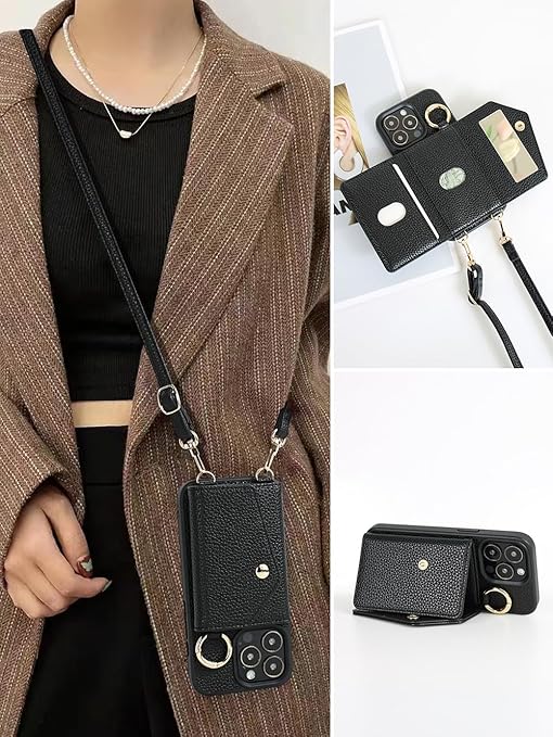 Google Pixel 10 ケース 手帳型 ピクセル10 Pro ケース 手帳型 グーグルピクセル10 財布型 ショルダー 背面カード収納 化粧鏡 スマホケース Googleピクセル10 ピクセル10携帯カバー GooglePixel10ケース スタンド機能 ストラップ 肩掛け 鏡付き - ブラック a