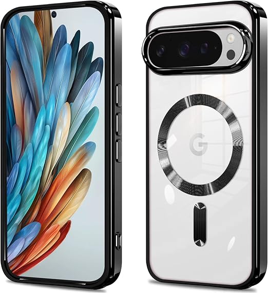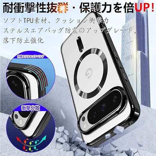 Google Pixel 10 / Pixel 10 Pro ケース クリア グーグル ピクセル10 カバー 透明 耐衝撃 マグセーフ対応 TPU スマホケース 薄型 Qi急速充電対応 メタリック光沢 かわいい 落下防止 カメラ保護 画面保護 軽薄 (黒) a