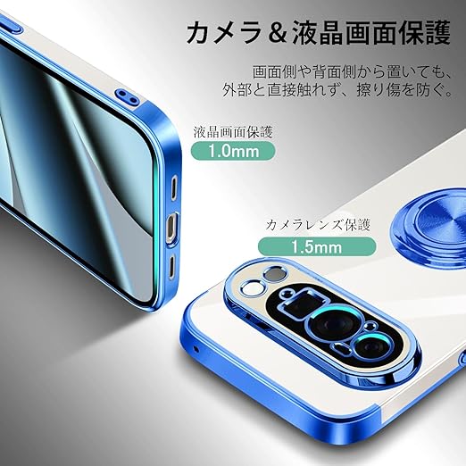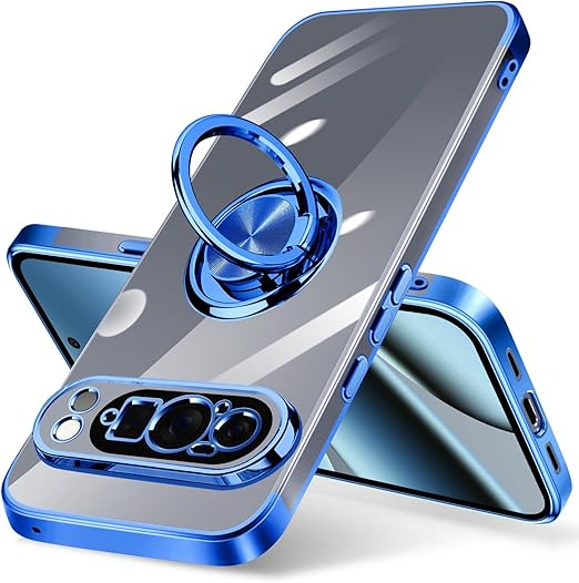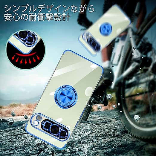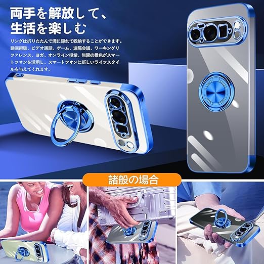 Google Pixel 10 Pro XL ケース リング付き クリア Pixel 10Pro XL ケース 耐衝撃 スタンド機能 ストラップホール付き 軽量 スリム ソフト TPU ピクセル 10pro xl カバー 透明 TPU 擦り傷防止 落下防止 (ブルー) a