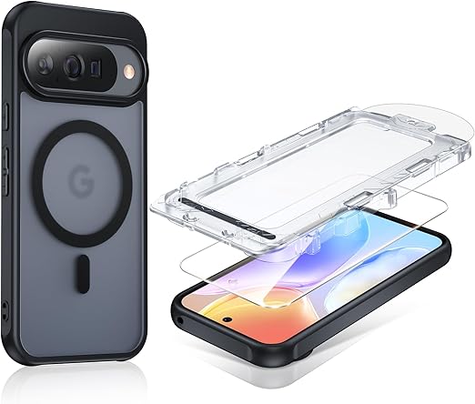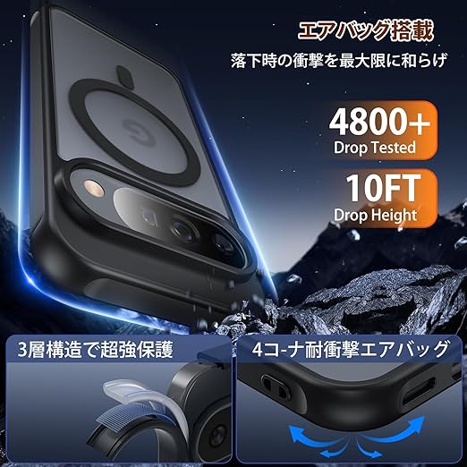 Google Pixel 10 / Pixel 10 Pro 用 ケース Magsafe対応「9Hガラスフィルム1枚 最新型のガイド枠付き 自動貼り付け 気泡レス 自動吸着 99%高透過率」OURJOY スマホケース ピクセル 10 / ピクセル 10 Pro カバー マット加工 指紋防止 米軍規格 耐衝撃 ワイヤレス充電 軽量 薄型・ブラック a