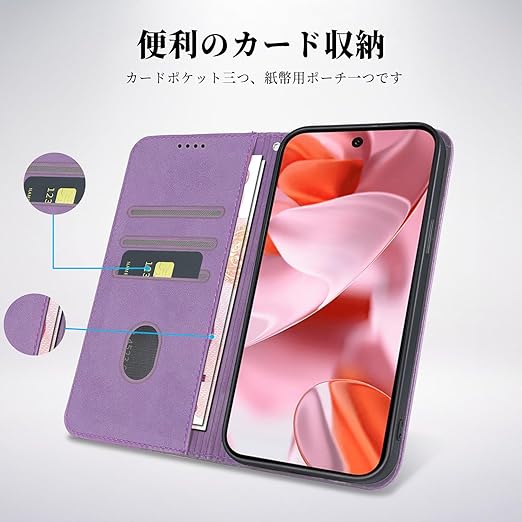 CASAFUNY Google Pixel 10 /Pixel 10 Pro ケース 手帳型 通用 おしゃれ カバー ピクセル10プロ/ピクセル10 スマホケース 耐衝撃 本革 PUレザー 携帯カバー お洒落 軽量 手帳型 人気 ビジネス スマホカバー カード収納 横置き機能 マグネット(パープル) a