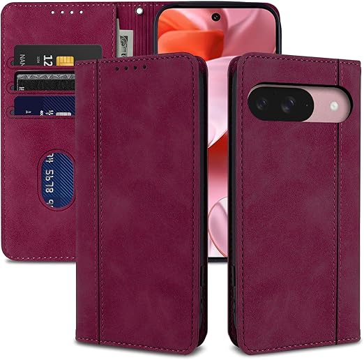 laddutoi 適用 pixel 10pro ケース pixel 10 ケース 軽量 薄い PU レザー マグネット カード収納 耐衝撃 スタンド 手作り 持ちやすい 滑り止め すり傷防止マグネット 横置きスタンド機能 財布型 落ち着いた色 お洒落 カバー 落下防止 手触り良い-あかい a
