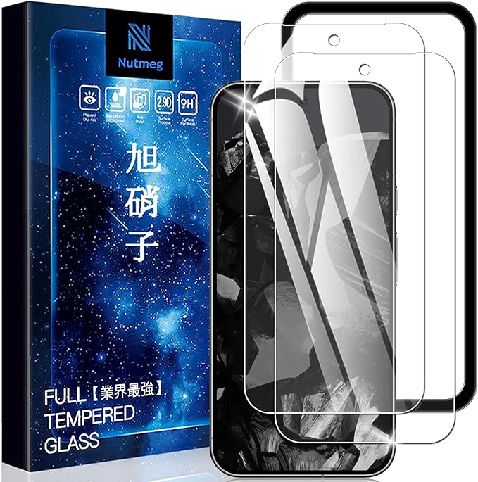 Nutmeg【2枚セット】Google Pixel 9/9 pro ガラスフィルム 指紋認証対応 ガイド枠付き Google Pixel 10/10 pro フィルム グーグルピクセル9/9 pro/10/10 pro 保護フィルム 強化ガラス 日本製旭硝子採用 高透過率 耐衝撃 気泡防止 硬度9H 飛散防止 超高質感 スクラッチ防止 貼り付け簡単 ラウンドエッジ加工 a