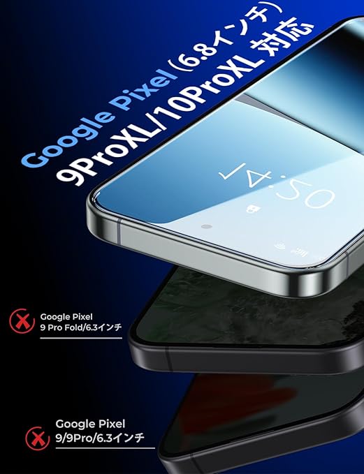 【もう失敗はしない】本製品はGoogle Pixel 9 Pro XL/Pixel 10 Pro XLに対応するガラスフィルム2枚セットです。百万以上の欧米ユーザーのフィドバックを集めて日々改善したガイド枠は、3歩だけで保護フィルムを貼り付けます。そのうえ、自動ホコリ取りデザインだけでなく、ガイド枠のスロープデザインで、空気を順序に取り除くことができて、初心者でも気泡レスのまま綺麗に貼れます。