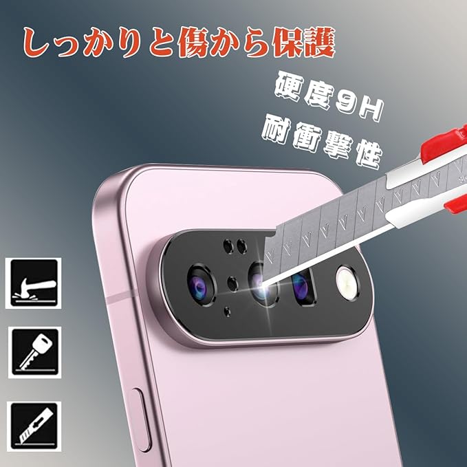 【カメラレンズ全面保護】このカメラ保護フィルムはPixel 10 Pro に専用設計されます。アルミ合金製なので普通のガラス製のカメラフィルムより耐久性は強いです。本製品はアルミニウム合金+AR超高透過率ガラスを採用し、レンズフィルムの周りにアルミニウム材質で擦り傷や衝撃からカメラレンズをしっかりと守られます。