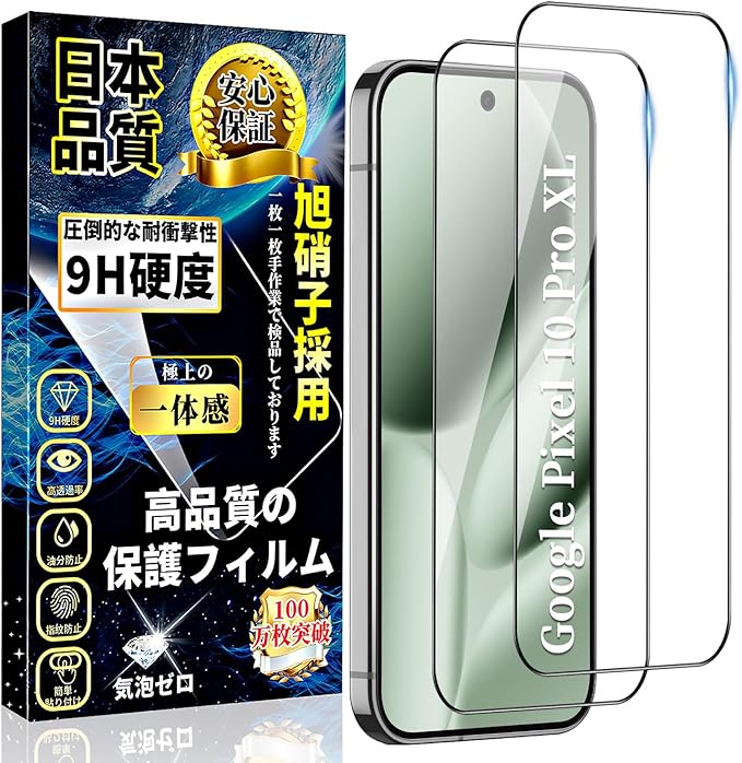 対応 Google Pixel 10 Pro XL ガラスフィルム 全面保護 グーグルピクセル10 Pro XL フィルム 【2枚入り】硬度9H 指紋認証対応 日本旭硝子製 撥水撥油 貼り付け簡単 自動吸着 指紋防止 気泡防止 キズ防止 Pixel 10 ProXL 強化ガラス 液晶保護フィルム a