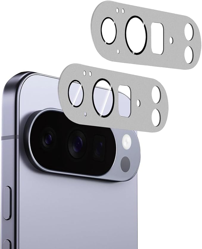 Google Pixel 10 Pro XL 用 カメラフィルム【アルミ合金製+強化ガラス】レンズ 保護カバー 耐衝撃 露出オーバー防止 全面保護 高透過率 グーグルピクセル10 Pro XL レンズ保護フィルム [2枚] (シルバー) a