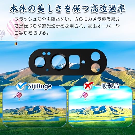 【耐衝撃性】9H硬度のカメラフィルムは傷や擦れに強い、ナイフや鍵などの尖ったものでも簡単には傷がつきません。本体カメラを全面覆うフルガードタイプです、大事なカメラ部分をしっかり守ります。
