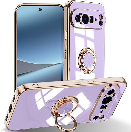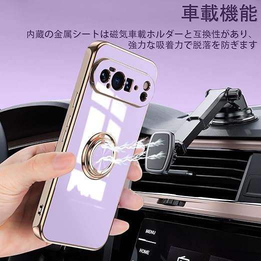 [ZoRoll] Google Pixel 10 Pro XL 5G 対応 ケース リング付き、 Pixel 10 ProXL TPU シリコン メッキ加工カバー 磁気吸着 軽量 薄型 人気 耐衝撃 タンド機能付き 360回転 車載ホルダー対応 グーグル ピクセル10プロ XL 用 カバー (パープル) a