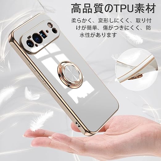 [ZoRoll] Google Pixel 10 Pro XL 5G 対応 ケース リング付き、 Pixel 10 ProXL TPU シリコン メッキ加工カバー 磁気吸着 軽量 薄型 人気 耐衝撃 タンド機能付き 360回転 車載ホルダー対応 グーグル ピクセル10プロ XL 用 カバー (ホワイト) a