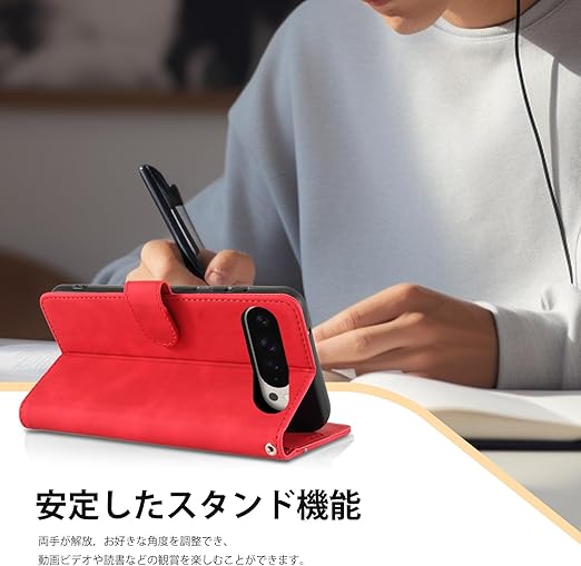 【CASAFUNY】Google Pixel 10 Pro XL ケース 手帳型 耐衝撃 高質PUレザー 携帯ケース グーグルピクセル10プロxl スマホケース シンプル ビジネス風 携帯カバー おしゃれ お洒落 カバー カードポケット マグネット開閉式 スタンド機能 軽量 スマホカバー(レッド) a