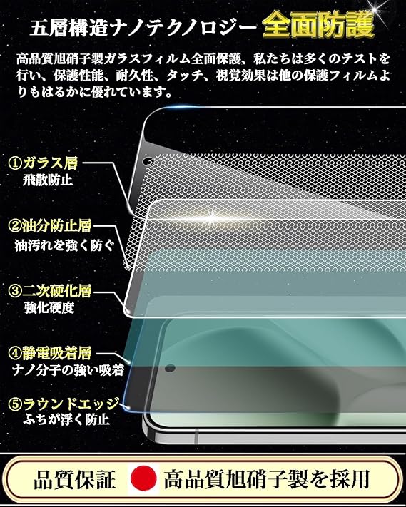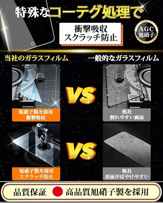 【最強硬度9H・飛散防止】ガラスフィルム一般的な液晶保護フィルム