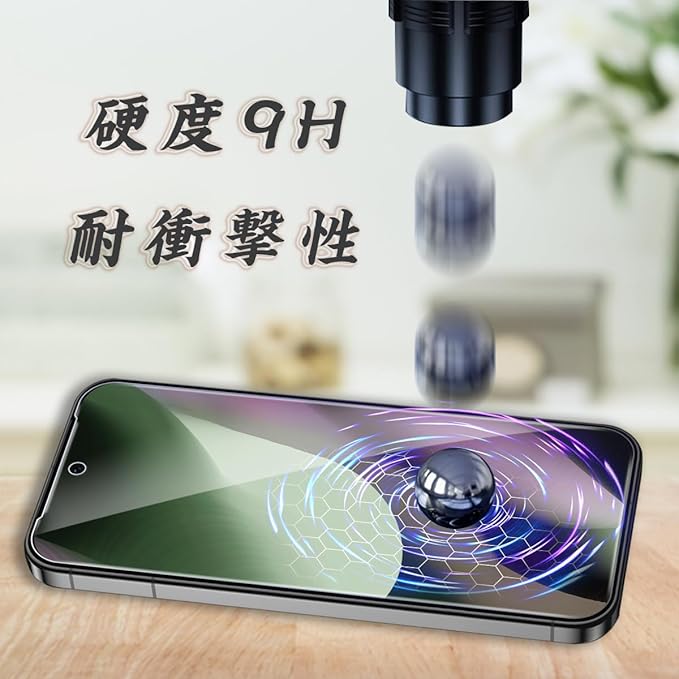 【日本製旭硝子製素材】表面硬度9Hと非常に高い硬度の持つ素材を採用し、外部の衝撃を吸収し、画面への損傷を最小限に抑えることができます。縁にかかる衝撃が軽滅しガラスフィルムの耐久性にも向上させます。特殊な飛散防