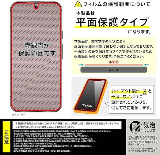 ブルーライトを約40%軽減、画面が綺麗に見える。PETフィルムの約5倍の硬度で傷付きにくい。汚れをはじき清潔に保つ防汚コート仕様。レイ・アウト製ケース(別売)と一緒に使える安心設計。