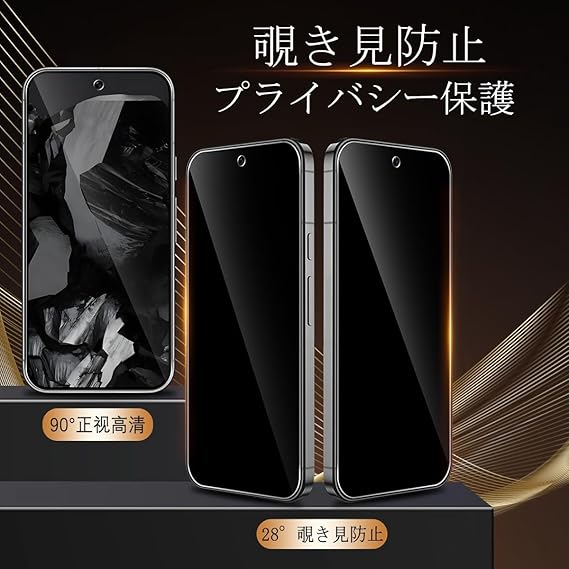 ★【180度覗き見防止・プライバシーフィルム】 グーグル ピクセル9 pro xlの180度覗き見防止フィルム,左右2方向の180度(前から?28度の視視角)のぞき見防止。正面から見る時はっきり見える、高透過率があ