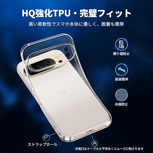 Aunote Google Pixel 10 Pro ケース クリア 米軍MIL規格 耐衝撃 ストラップホール付き TPU 薄型 軽量 スマホケース 擦り傷防止 ワイヤレス充電対応 グーグルピクセル10pro カバー a
