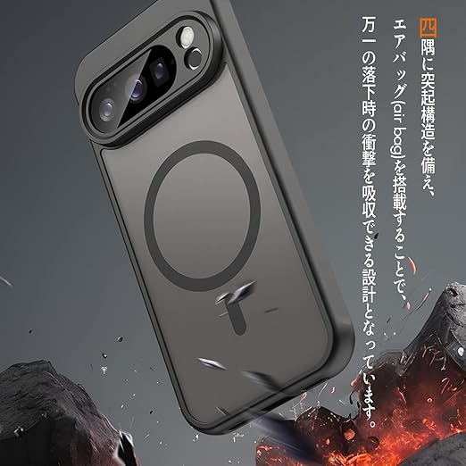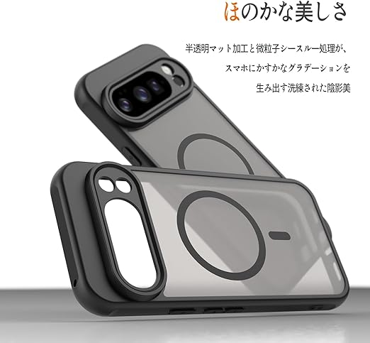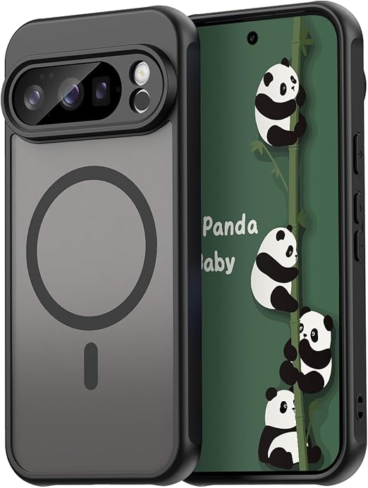 Panda Baby Google Pixel 10 Pro XL ケース 半透明 薄型 耐衝撃バンパー マット質感 マグネット搭載 MagSafe対応 (ブラック) a