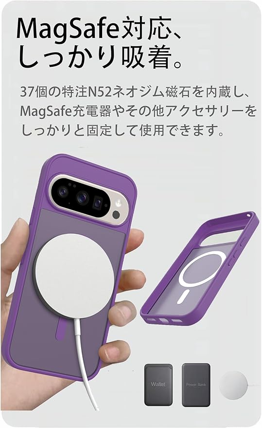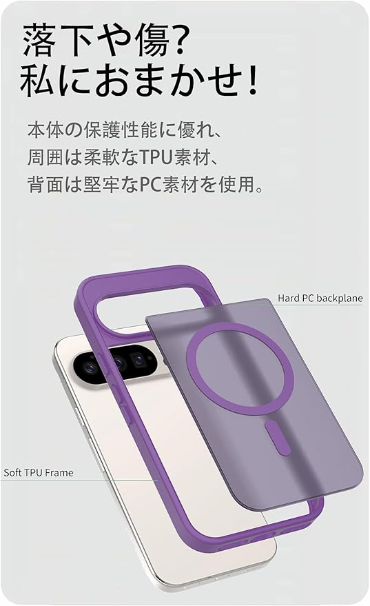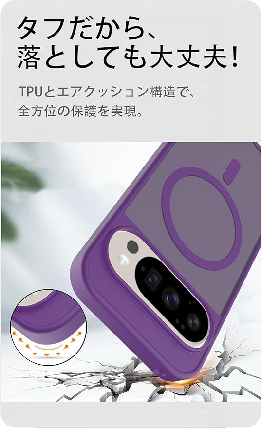 Google Pixel 10 / Pixel 10 Pro 対応 ケース 【MagSafe対応・MIL規格取得・耐衝撃】 半透明 マット仕上げ 黄変防止 薄型 軽量 ストラップホール付き ワイヤレス充電対応 パープル a