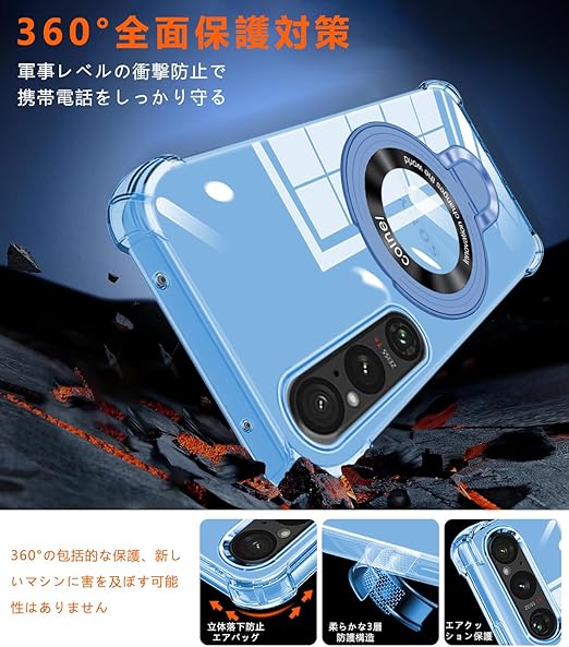 Google Pixel 10 Pro XL ケース クリア リング付き MagSafe対応 マグネット搭載 縦横両対応 アジャスタブルスタンド 四角エアクッション 耐衝撃 スマホ ケース Google Pixel 10 Pro XL カバー 衝撃吸収ポケット内蔵 TPU 薄型軽量 全面保護 a
