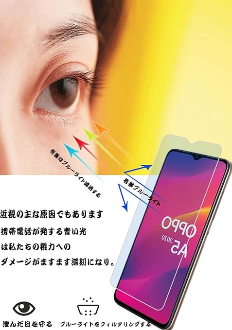 【ブルーライトカット 93%】【目の疲れ軽減】OPPO A5 2020 用の ガラスフィルム A9 2020/A11/A11X 用の 液晶保護 フィルム 保護ガラス レンズ保護フィルム a