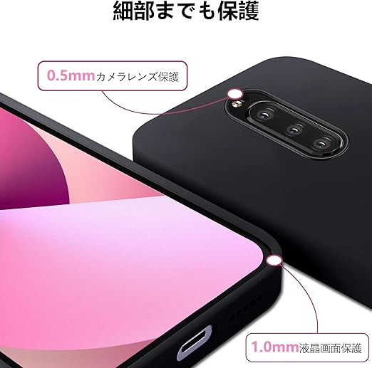 【レンズまで全面保護】本体に従って高低差設計、液晶画面より1mm高め。カメラレンズより0.5mm高め、外部と接触せず傷付く心配はない。更に、背面サイドでは少し高めがあり、滑り止め機能が備わって、ケー