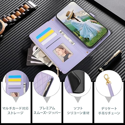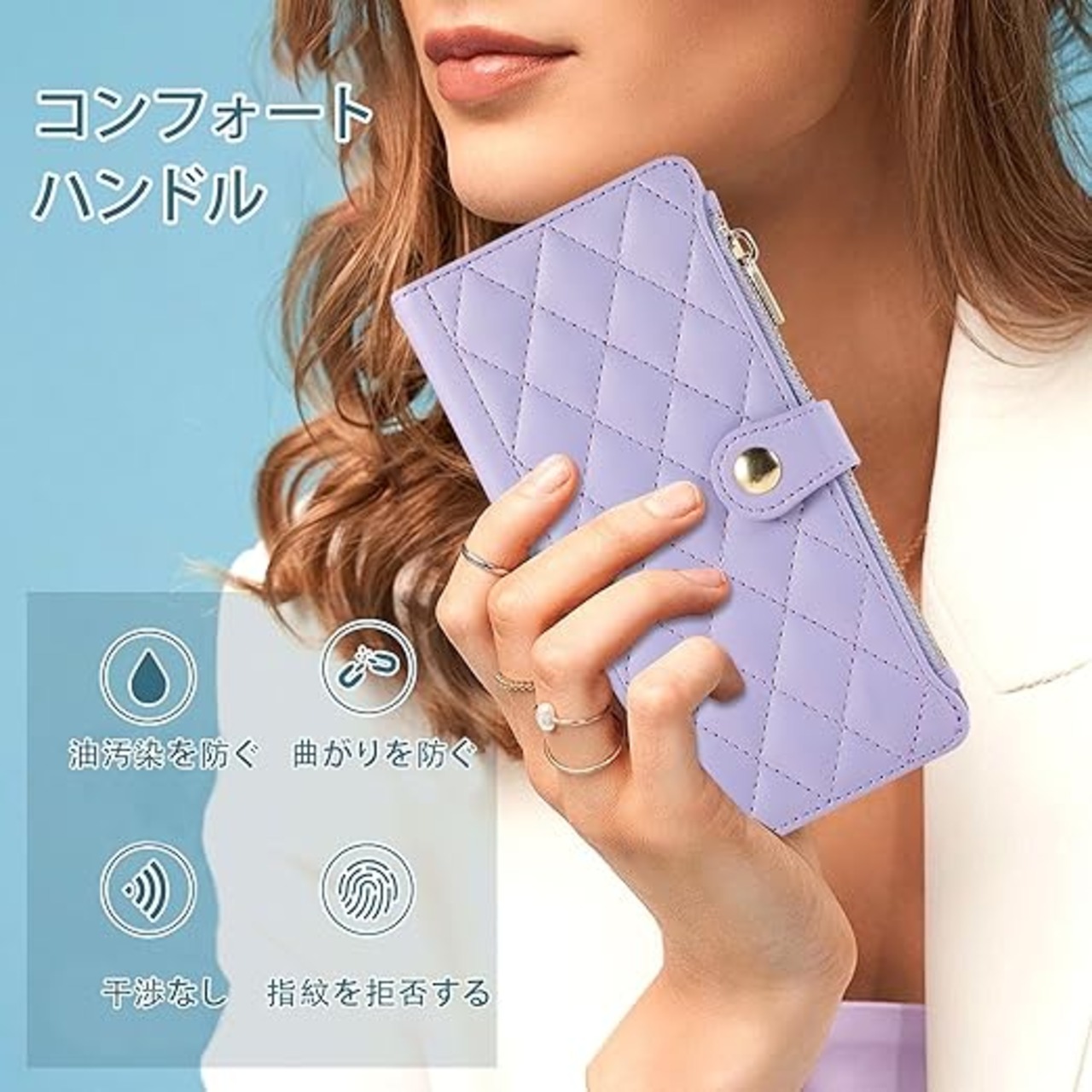 For OPPO Reno 7A/9A ケース 手帳型 適用OPPO Reno9 A ケース ショルダー 対応 OPPO Reno7A ケース 手帳型A201OP/OPG04/CPH2353 カバー ひし形柄 おっぽ スマホ Reno9 A ケース 人気 女性 肩掛け カード収納 ジップ付き財布 横置き機能 シンプル お洒落 スマホケース (ミスティ・パープル) a