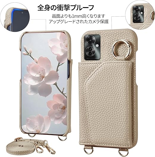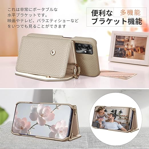 OPPO reno11a ケース 手帳型 おしゃれ おっぽ スマホ reno11 a ケース oppo reno11 a 手帳型ケース カバー 携帯ケースopporeno11a 携帯カバー オッポ レノ11a 肩掛け 調節可能なショルダーストラップ 化粧鏡付き 背面ICカード収納 かわいい 財布付き 取り外し可能なショルダーベルト[アーモンドブラウン] a